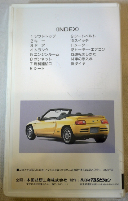 OWNER'S MANUAL (取扱い説明ビデオ) 企画:本田技研工業株式会社製作:TBSビジョンのいわゆるホンダ謹製の取扱い説明ビデオです。 最近、オークションにて入手しました。 シュリンクも開封されていない、未使用新品です。 中身はYouTubeで見たことあるのとおそらく同じ内容なので、開封すべきか、このままコレクションとして保存しておくか迷うところです(笑) HNが新車で購入した時には、こんなビデオは貰えませんでいしたが、ディーラーのモニター展示用とかなのでしょうか? COLLECTION COLLECTION BOOKS BOOKS VIDEO VIDEO ARCHIVES CATALOGADVERTISING MODELS MODELS