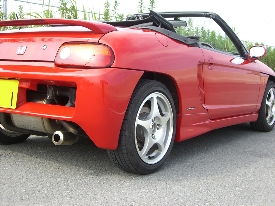 無限 サイドステップ1 無限製のサイドステップを装着しました。シンプルながらシャープなデザインで、紅BEのエアロパーツの中で一番最初に取り付けました。ちなみに無限のステッカーは剥がしてあります。 無限 サイドステップ2 一見、普通のシンプルなデザインですが、リアホイールアーチ前の部分が大きく張り出しています。BEATの基本デザインテーマの一つとしてジェリービーンズのようにボディ全体を湾曲させて錯覚で大きく見せるという方法を採っています。その為、ノーマルのホイールアーチ前の部分はやや抉れているのですが、無限製のサイドステップを装着すると、ボリュームアップしてロー&ワイドに見えます! 無限 サイドステップ3 ノーマルのリアバンパーの場合、バンパーの形状が丸くて、無限のサイドステップとのマッチングがイマイチでしたが、CAL RACERのリアバンパーを付ける事で下のラインがぴったり揃ってナカナカいい感じです! 無限 サイドステップ4 通常エアロパーツを付ける場合、フロント、サイド、リアを同一ブランドで揃えるのがセオリーですが、シャープなデザインのCAL RACERとのマッチングもいいと思います! MODIFY MODIFY EXTERIOR EXTERIORCANVAS TOP AERO FRONTSIDEREARAIR DEFLECTERWIPER BODY BODY WHEEL WHEEL TIRE TIRE BRAKE BRAKE ENGINE ENGINE FANNEL FANNEL EXH.MANIFOLD EXH.MANIFOLD SILENCER SILENCER HORN HORN INTERIOR INTERIOR SEAT DRIVER'S SEATSEAT RAILPASSENGER'S SEAT SUSPENSION SUSPENSION CAR NAVI XYZ No.1XYZ No.2XYZ No.3XYZ No.4 AUDIO AUDIO iPod/iPhone iPod/iPhoneAccessory COMPUTER COMPUTER LIGHT HID HEAD LIGHTHALOGEN HEAD LIGHTROOM LIGHT ETC ETC BATTERY BATTERY CHEMICAL CHEMICAL GARAGE GARAGE OTHERS OTHERS TIPS TIPS TROUBLE TROUBLE